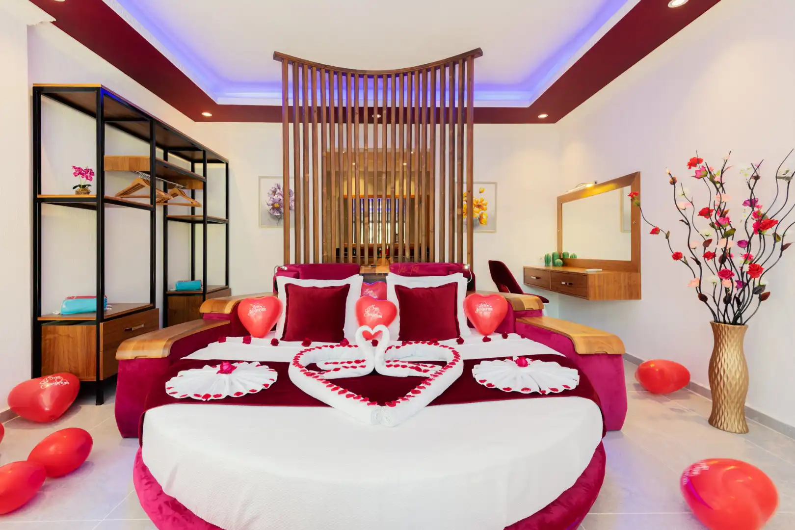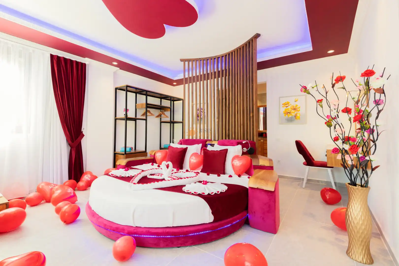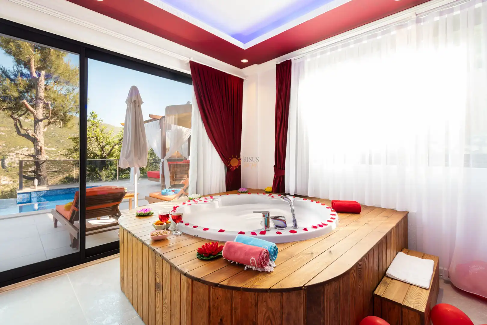 Çift Kişilik Yatak, Jakuzi, Banyo/WC, Komodin, Elbise dolabı, Makyaj Masası, Klima