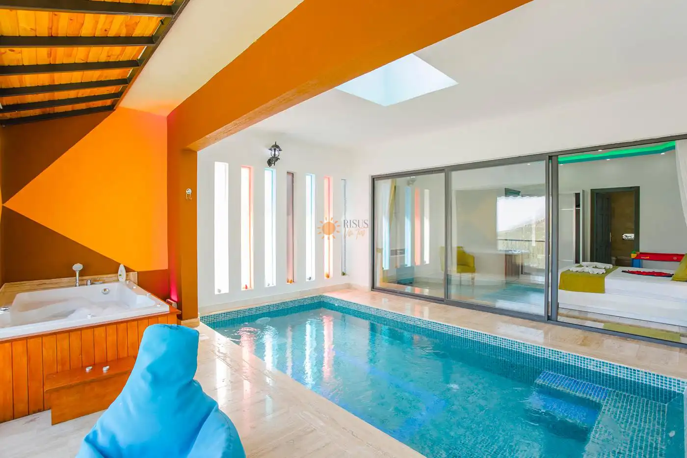 Çift Kişilik Yatak, Jakuzi, Banyo/WC, TV, 2 Komodin, Elbise dolabı, Makyaj Masası, Klima, Kapalı Havuz
