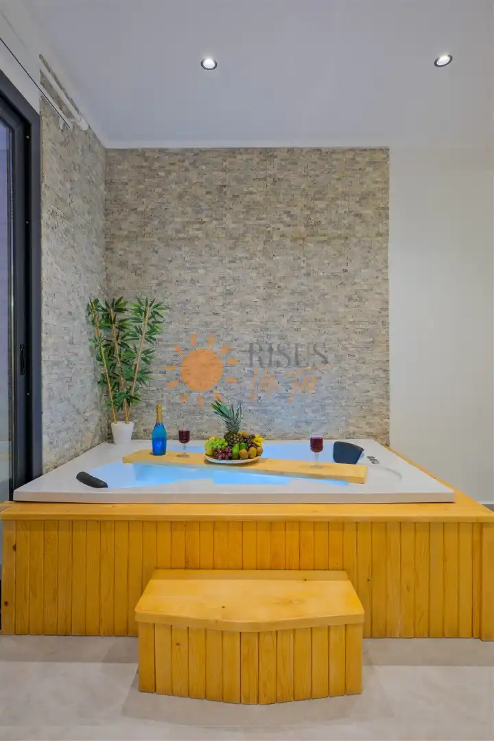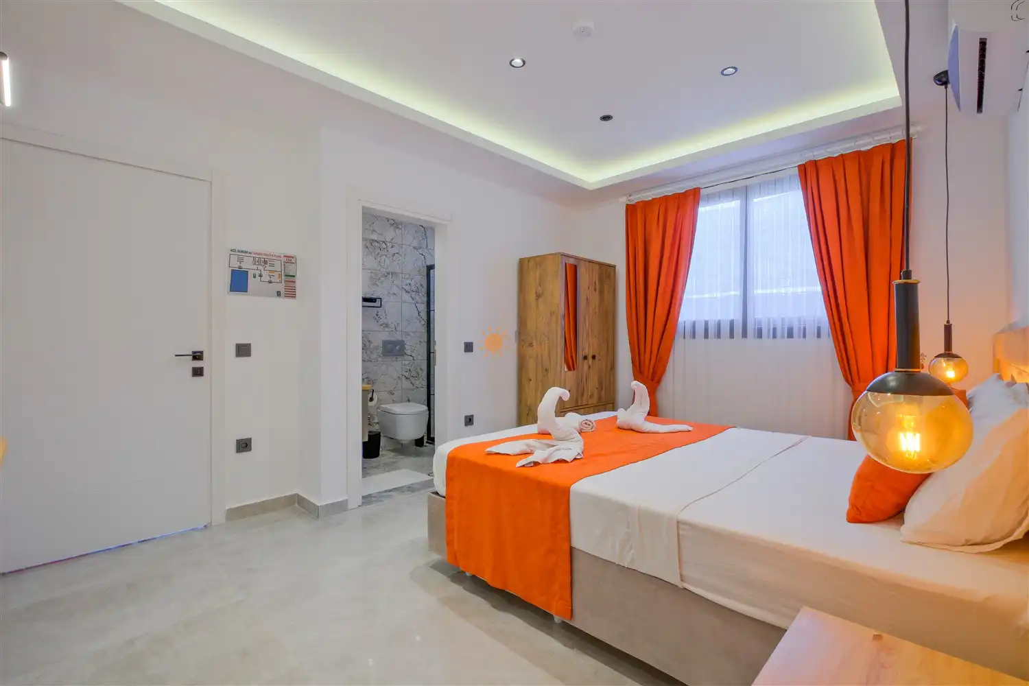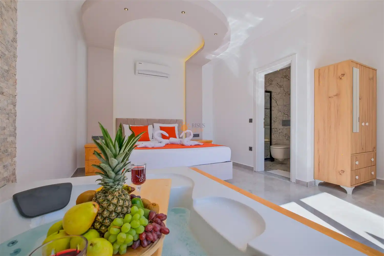 Çift Kişilik Yatak, Jakuzi, Banyo/WC, 2 Komodin, Elbise dolabı, Klima