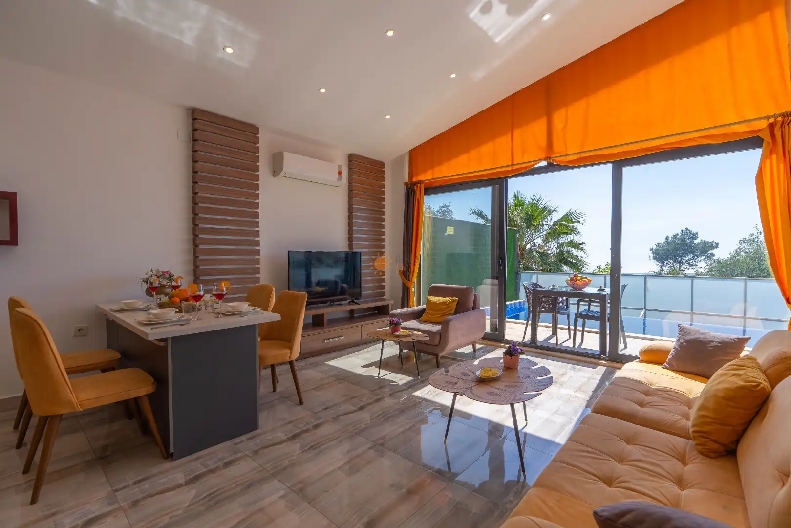 5 ) = Rezervasyon iptali giriş tarihine 0-15 gün kala gerçekleştiğinde veya misafir konaklama ( villa,apart,otel vb.) tesisine giriş yapmadığı taktirde misafir toplam rezervasyon bedelinin %100'ünü ödemekle yükümlüdür.