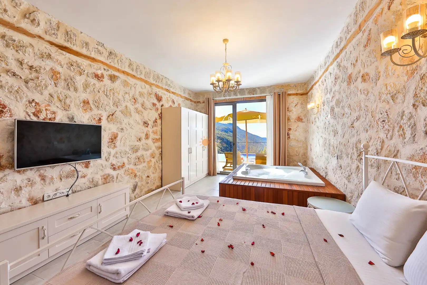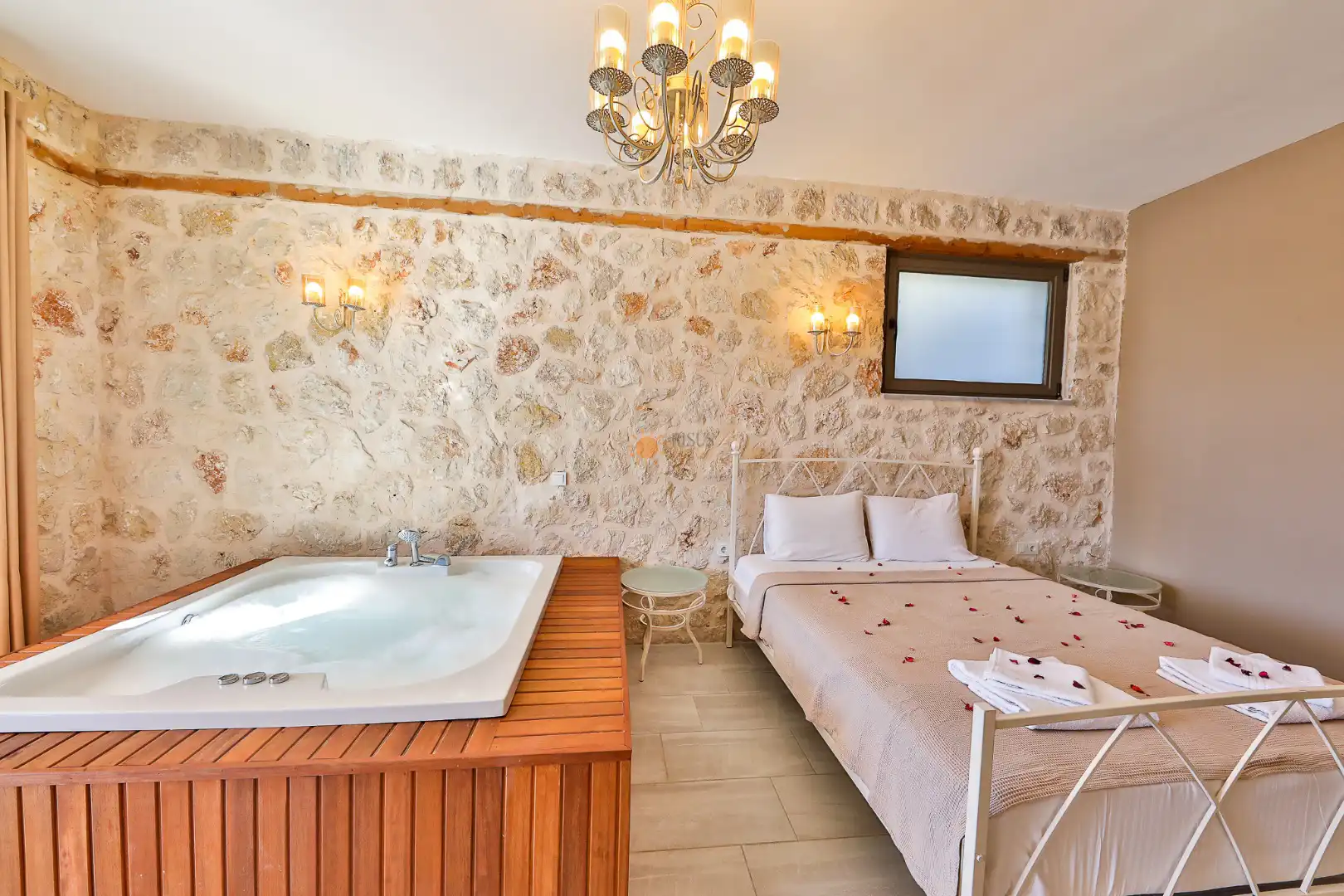 Çift Kişilik Yatak, Jakuzi, Banyo/WC, TV, Elbise dolabı, Klima