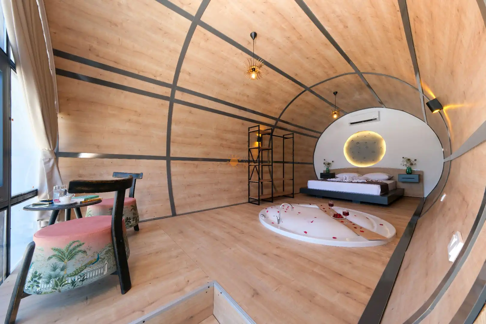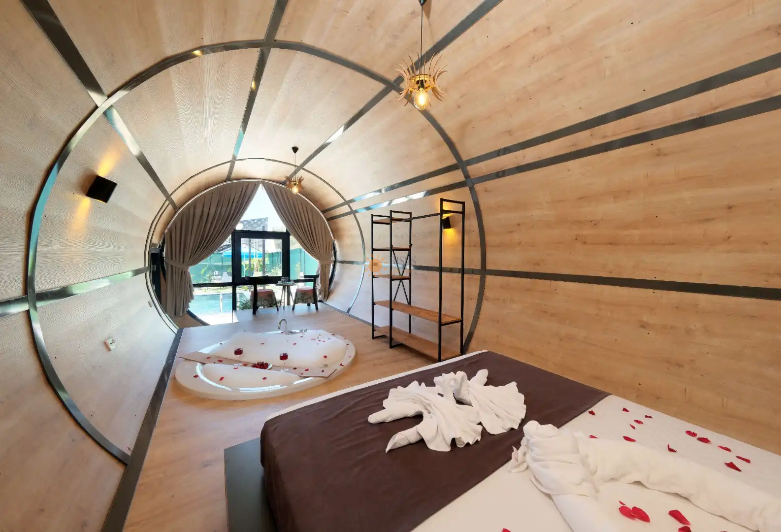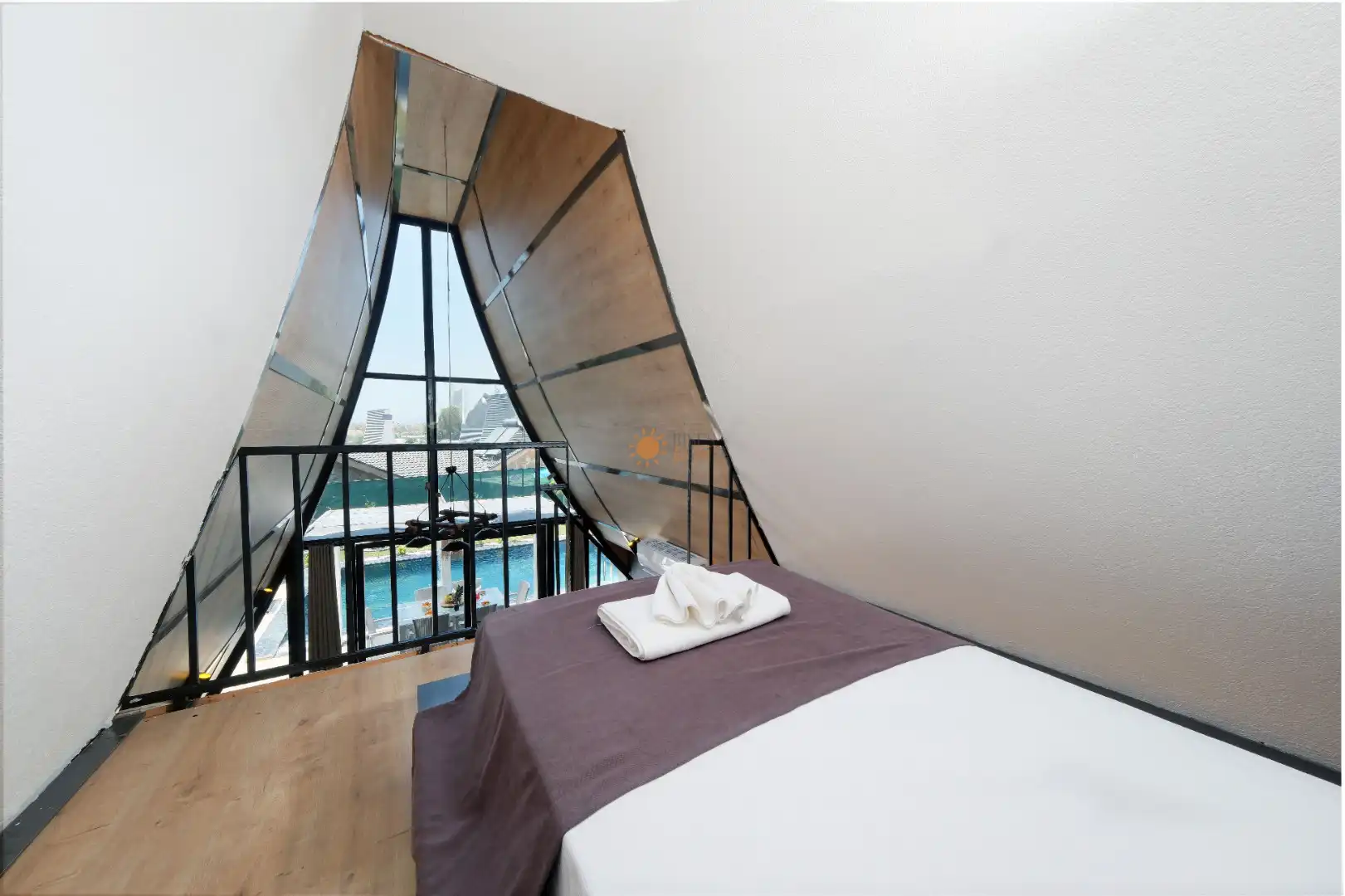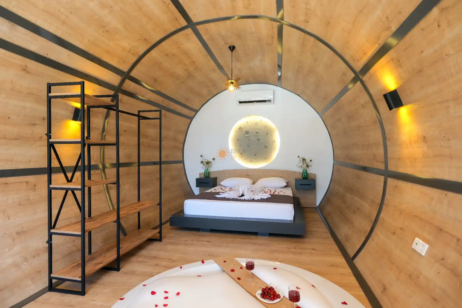 Çift Kişilik Yatak, Jakuzi, Banyo/WC, 2 Komodin, Elbise dolabı, Makyaj Masası, Klima