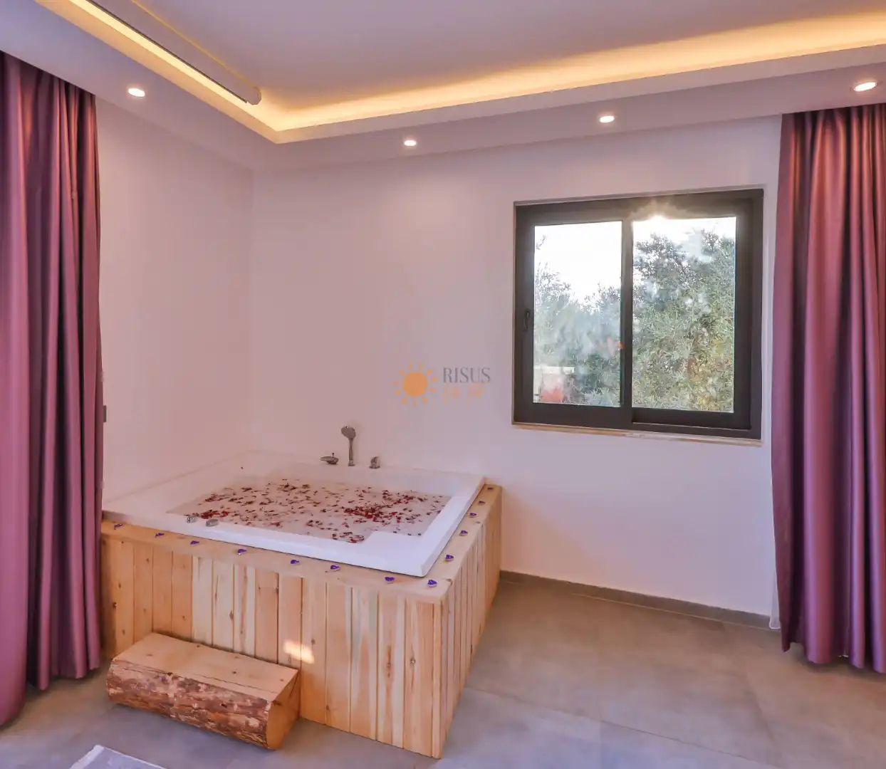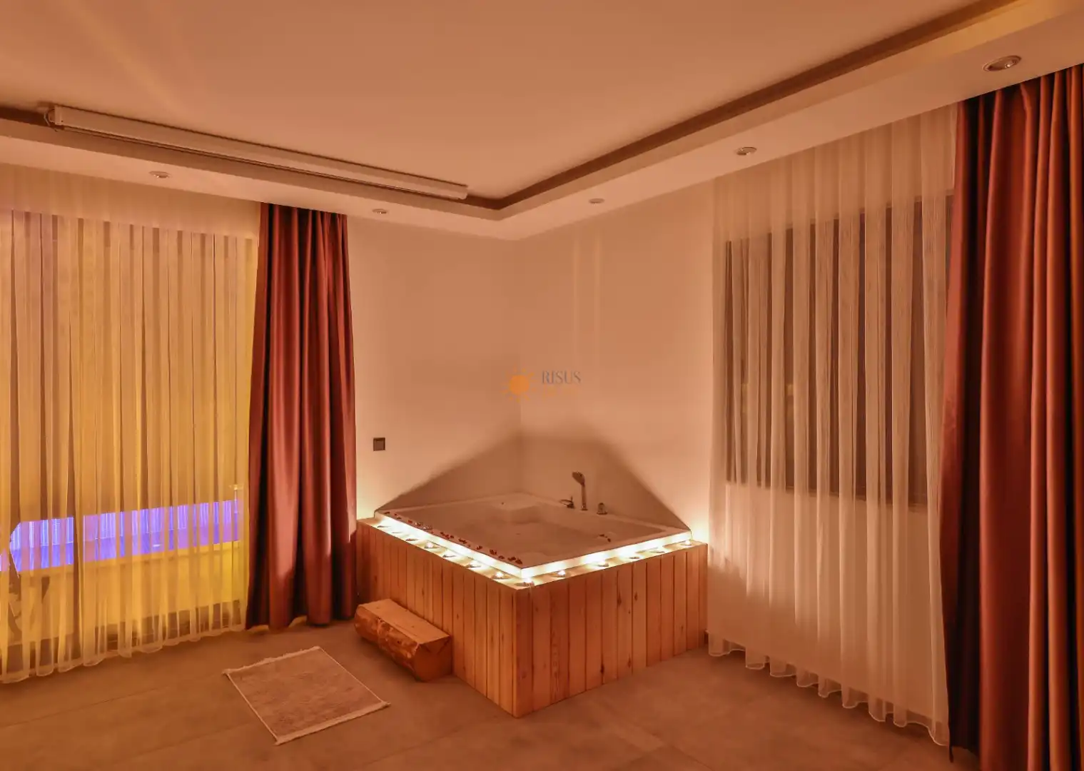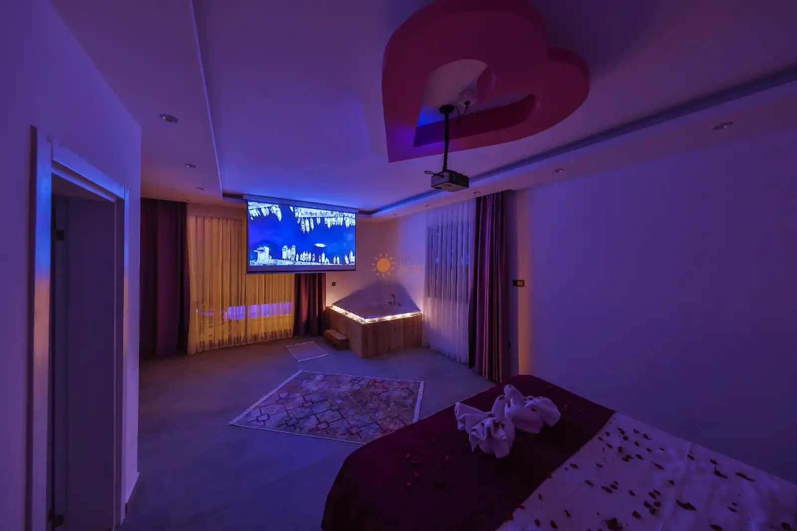 Çift Kişilik Yatak, Jakuzi, Banyo/WC, TV, 2 Komodin, Elbise dolabı, Makyaj Masası, Klima