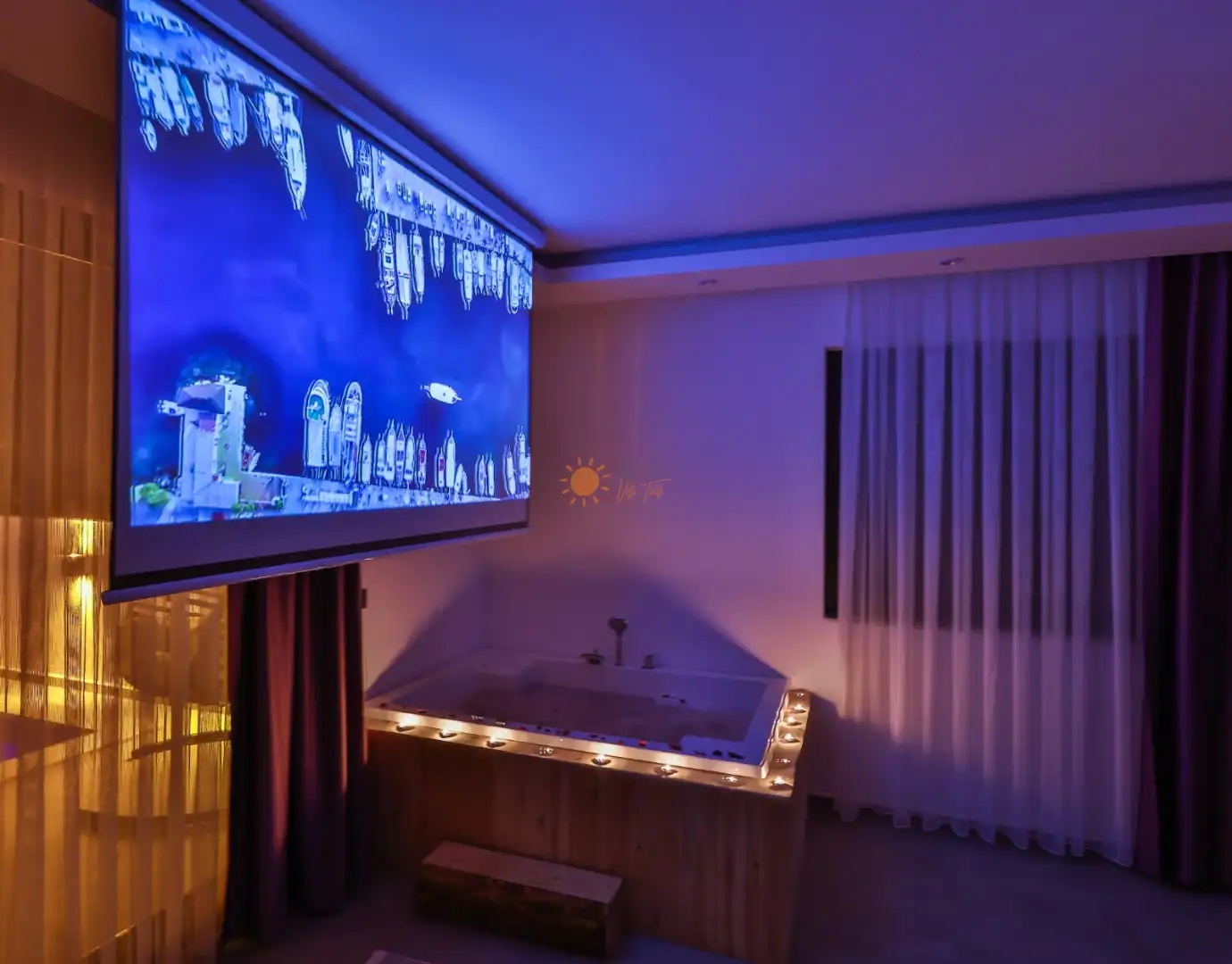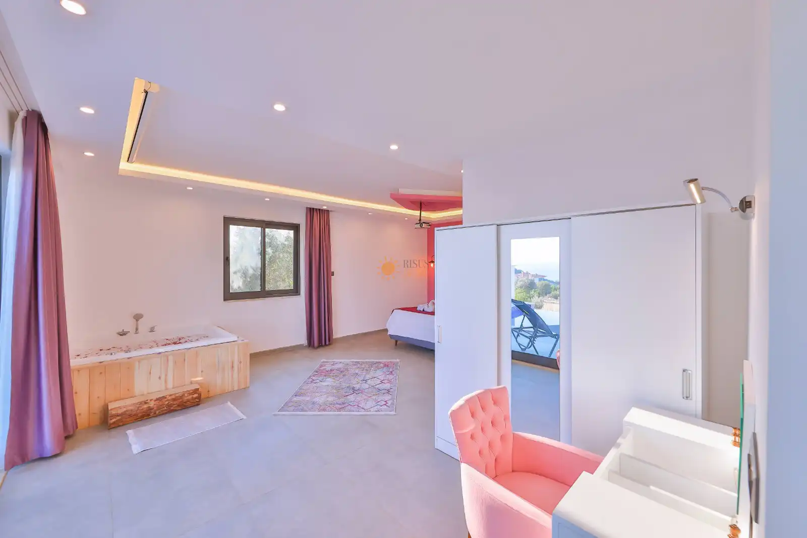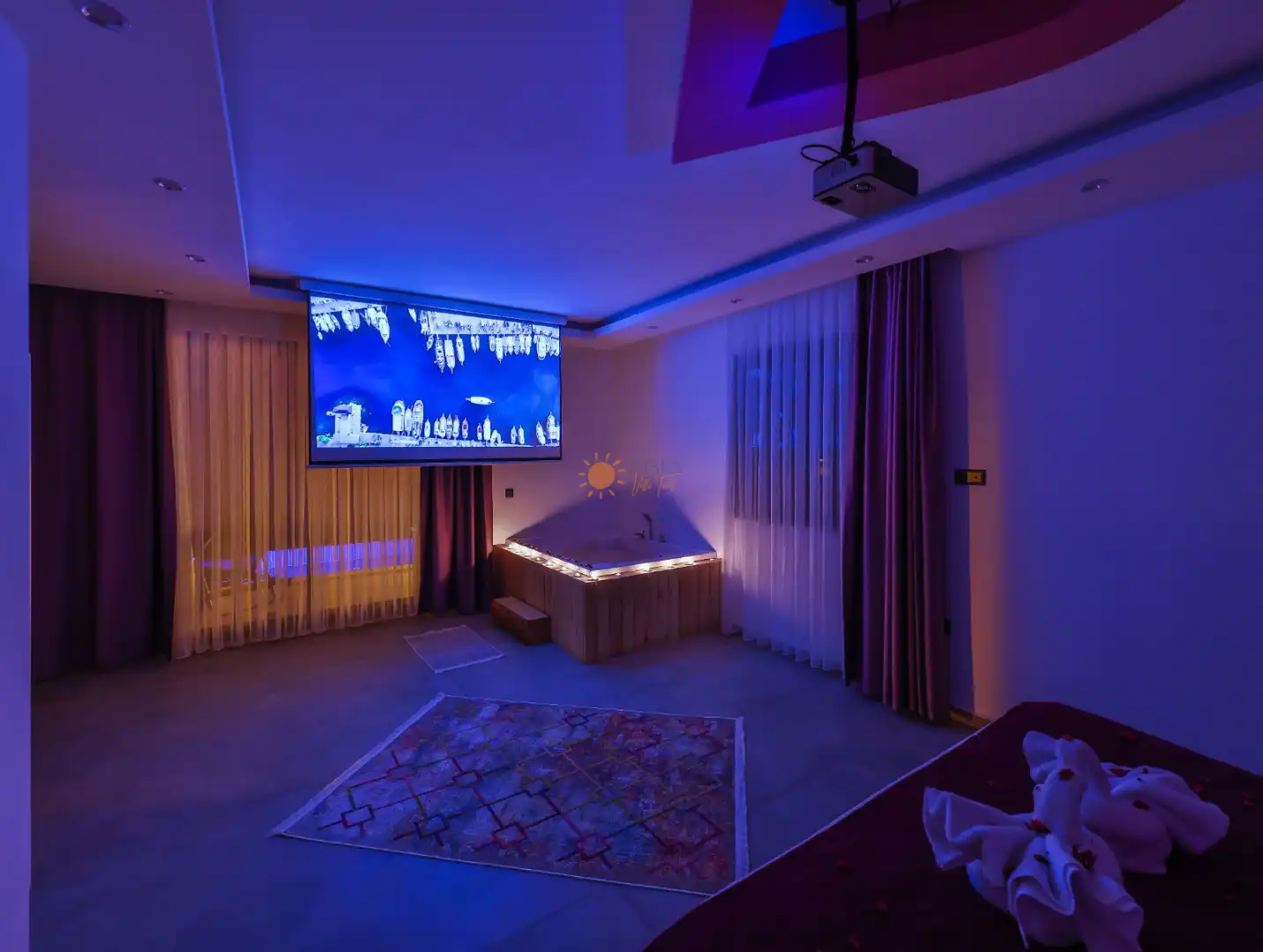 Çift Kişilik Yatak, Jakuzi, Banyo/WC, TV, 2 Komodin, Elbise dolabı, Makyaj Masası, Klima
