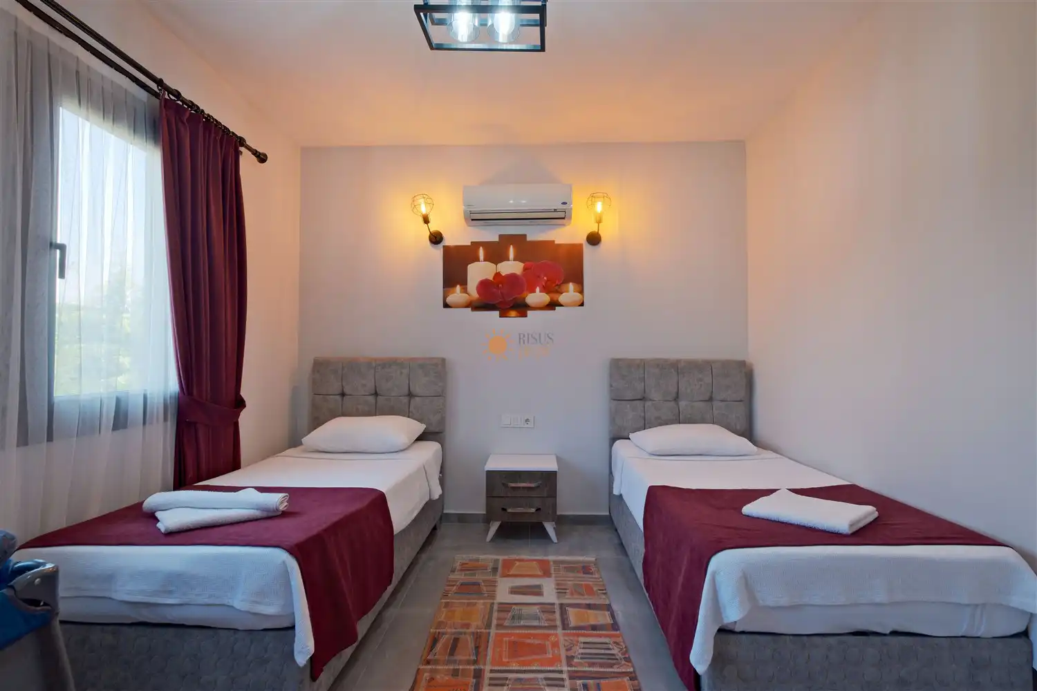 2 Tek Kişilik Yatak, Banyo/WC, Komodin, Elbise dolabı, Makyaj Masası, Klima