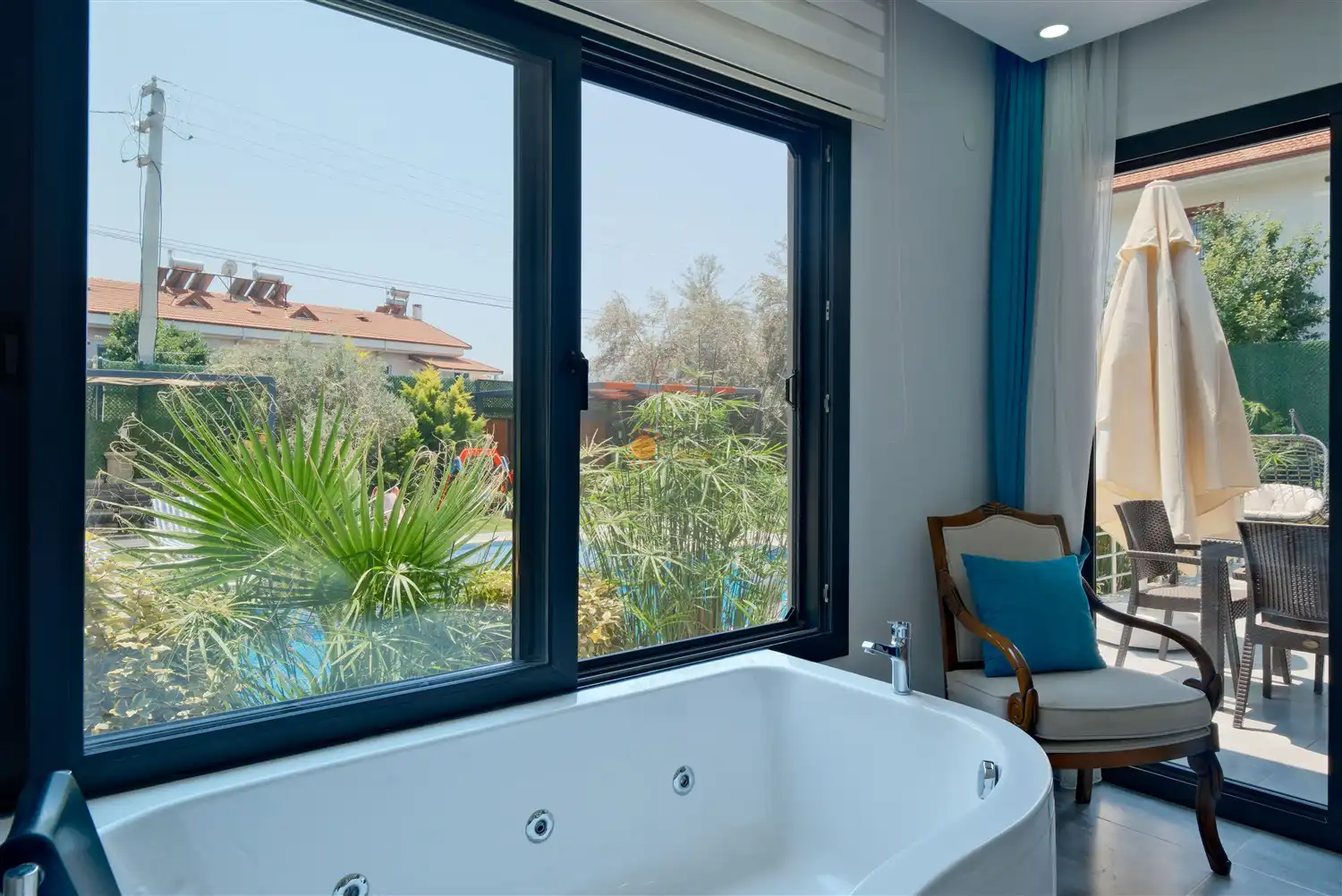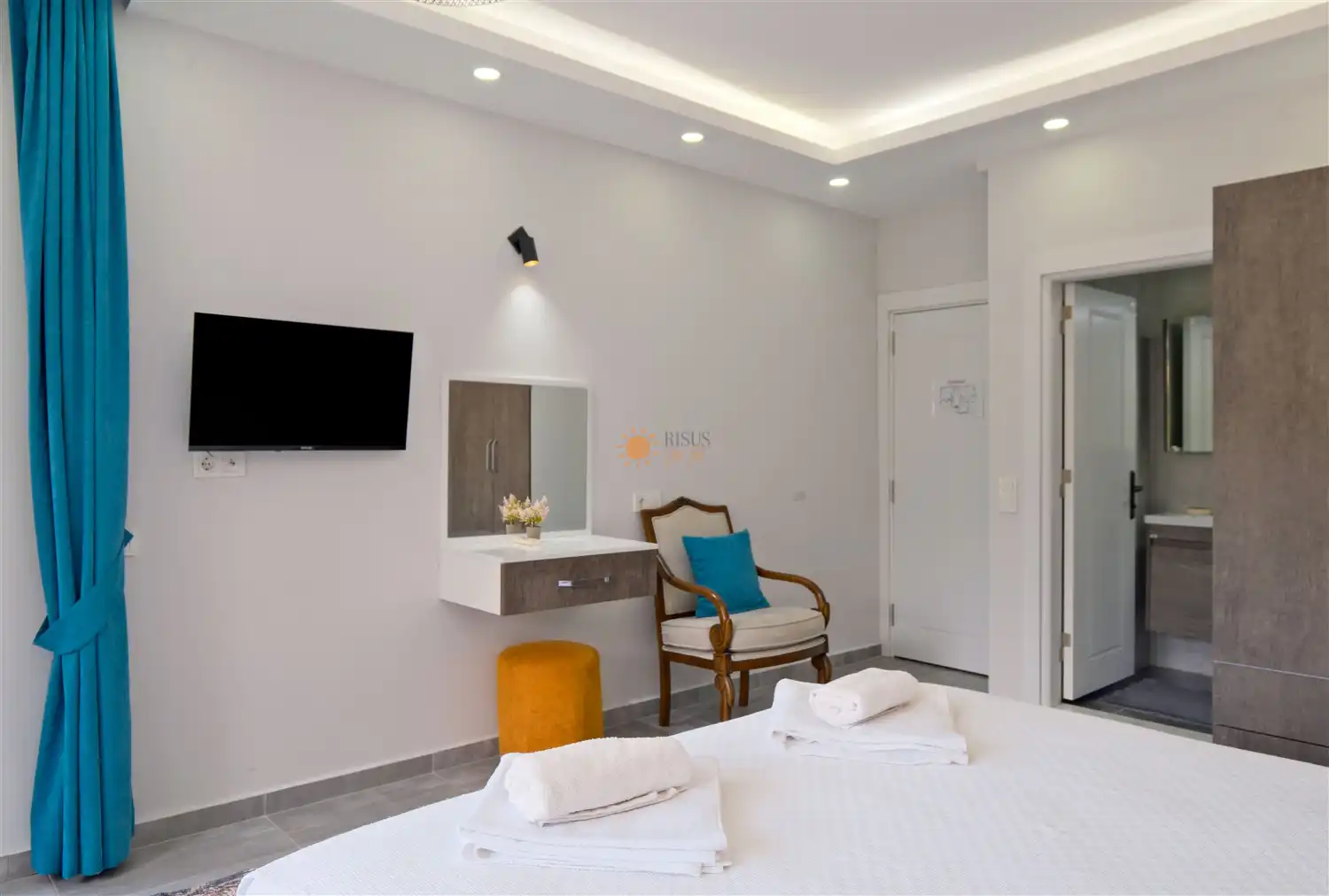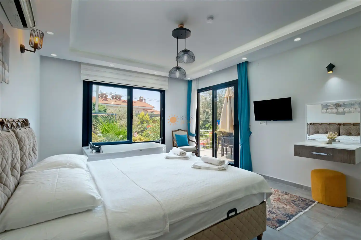 Çift Kişilik Yatak, Jakuzi, Sauna, Banyo/WC, TV, 2 Komodin, Elbise dolabı, Makyaj Masası, Klima