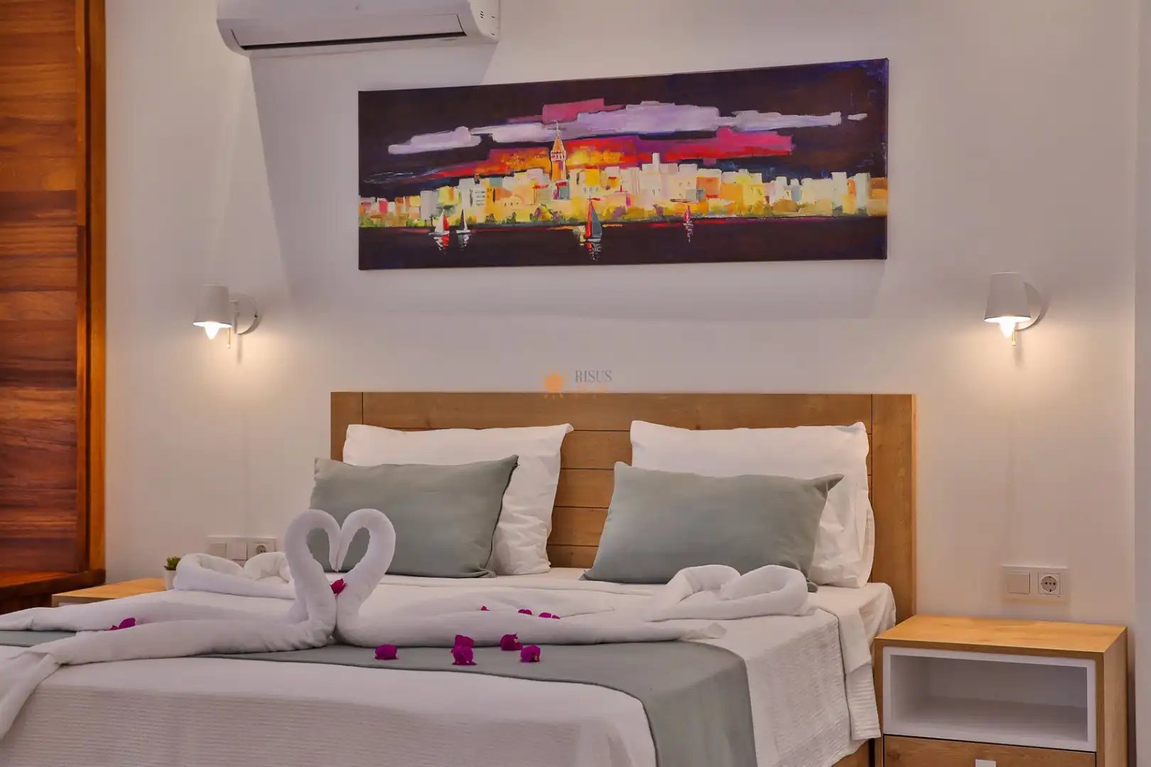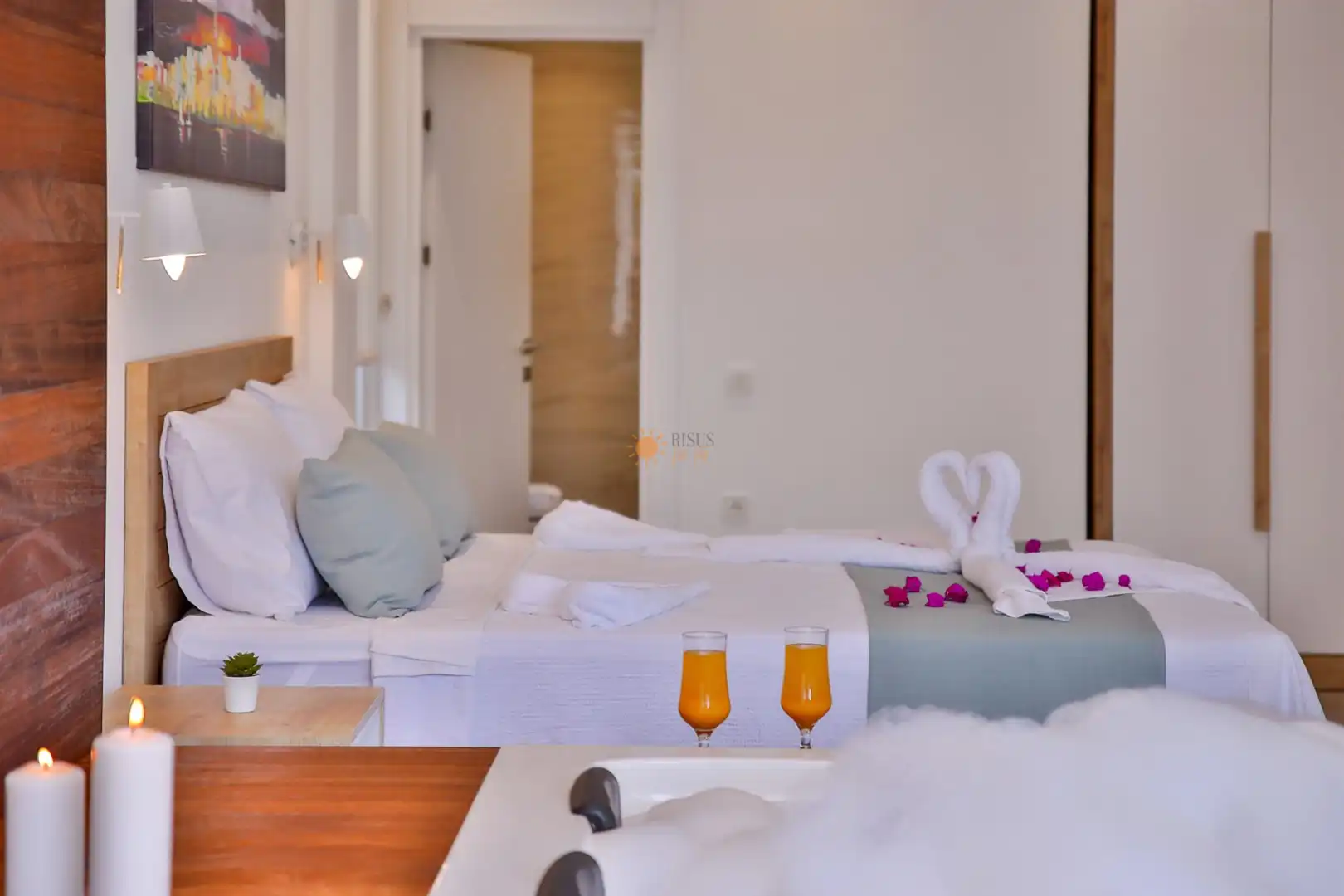 Çift Kişilik Yatak, Jakuzi, Banyo/WC, Komodin, Elbise dolabı, Makyaj Masası, Klima