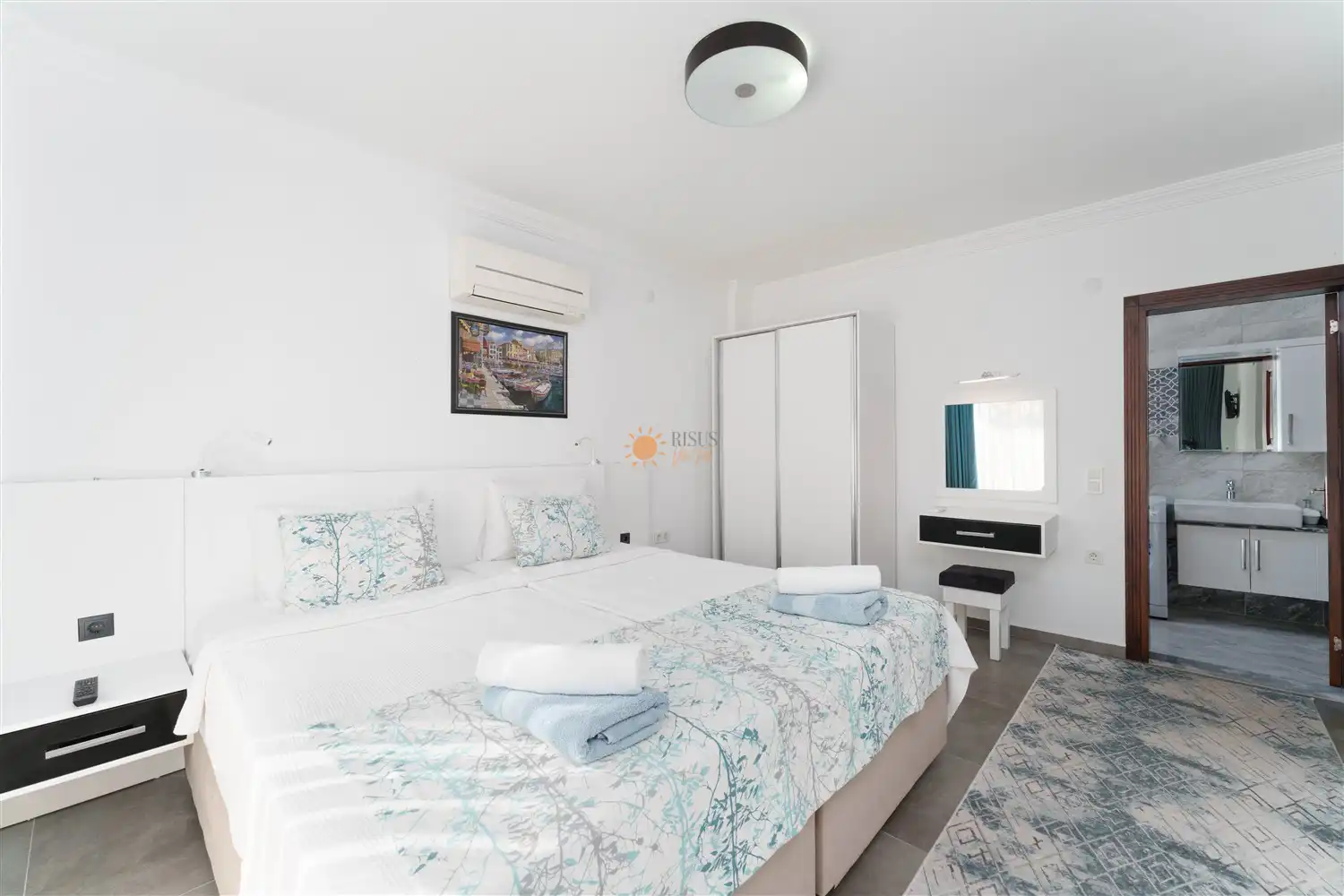 Çift Kişilik Yatak, Banyo/WC, TV, 2 Komodin, Elbise dolabı, Makyaj Masası, Klima