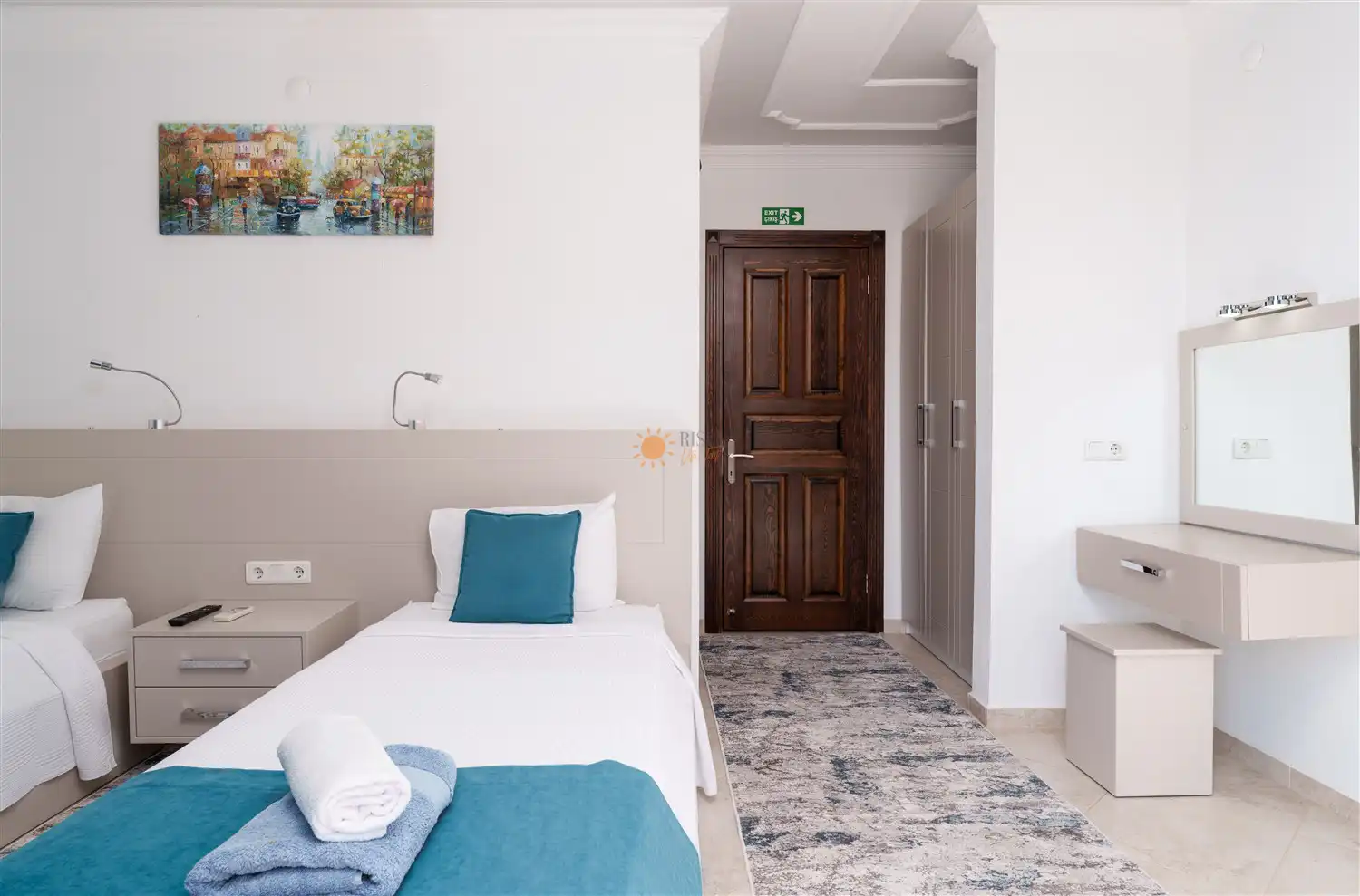 2 Tek Kişilik Yatak, Banyo/WC, TV, Komodin, Elbise dolabı, Makyaj Masası, Klima