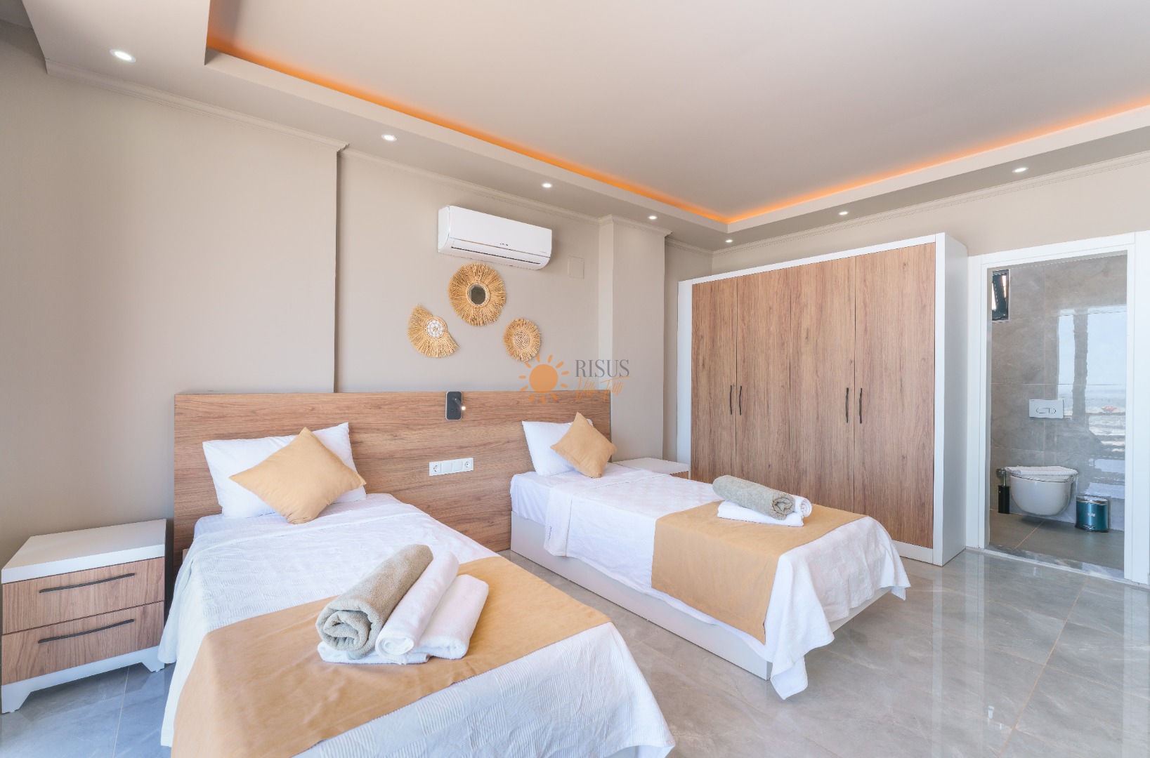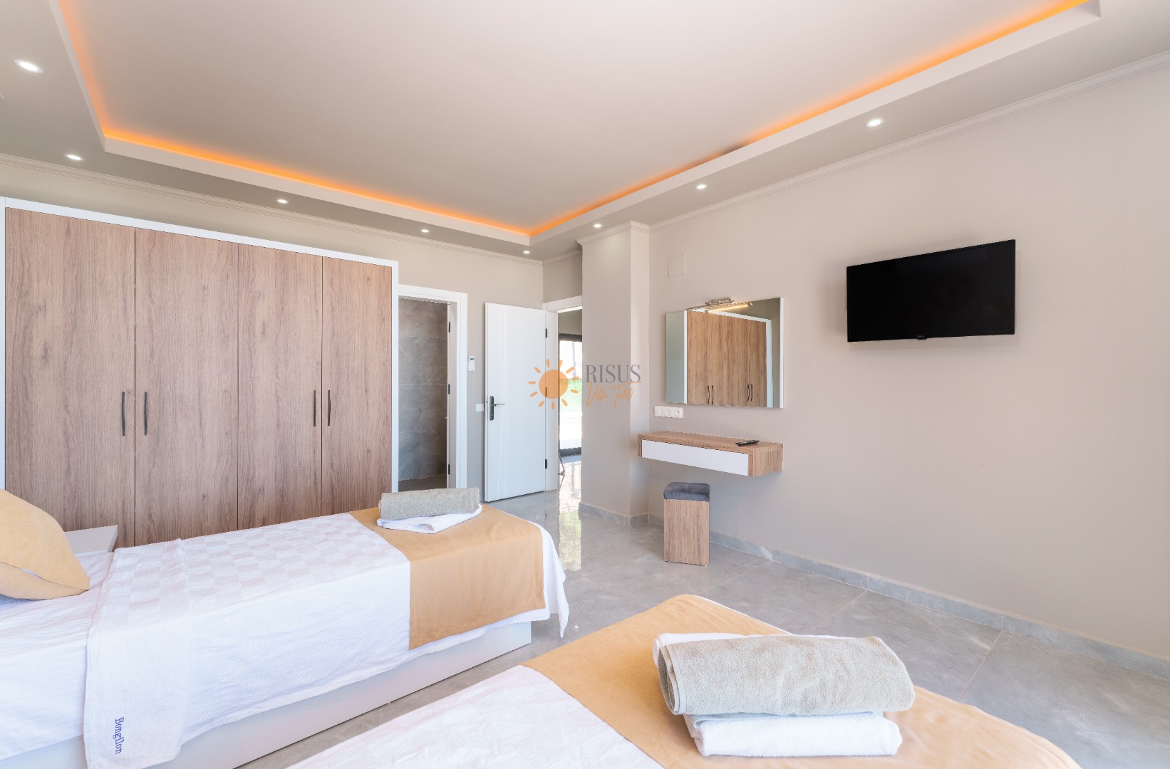 2 Tek Kişilik Yatak, Banyo/WC, TV, 2 Komodin, Elbise dolabı, Makyaj Masası, Klima