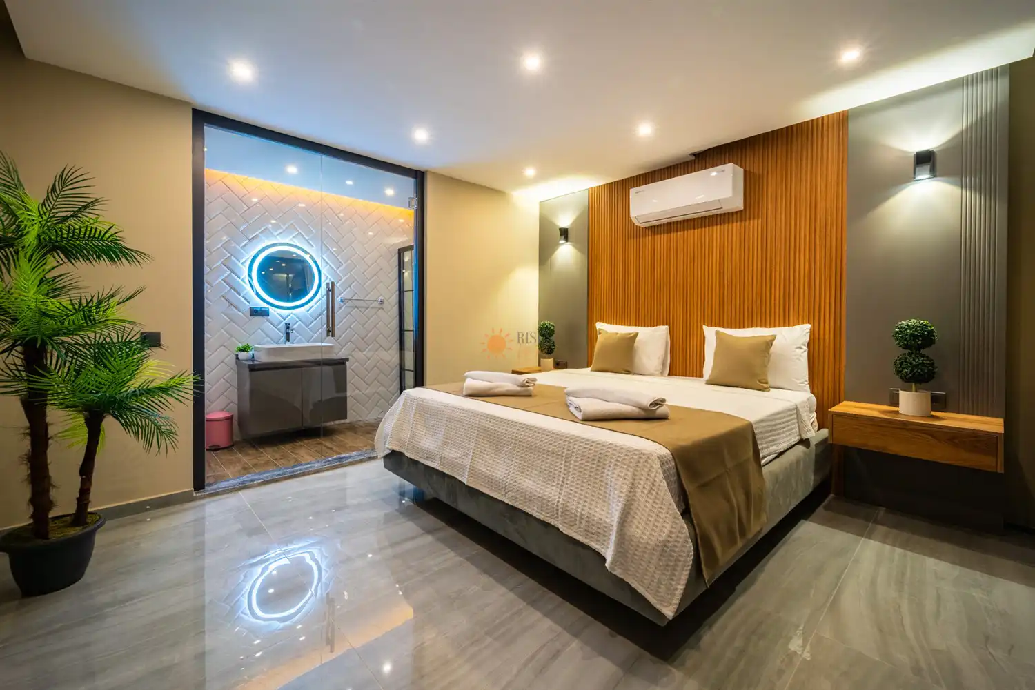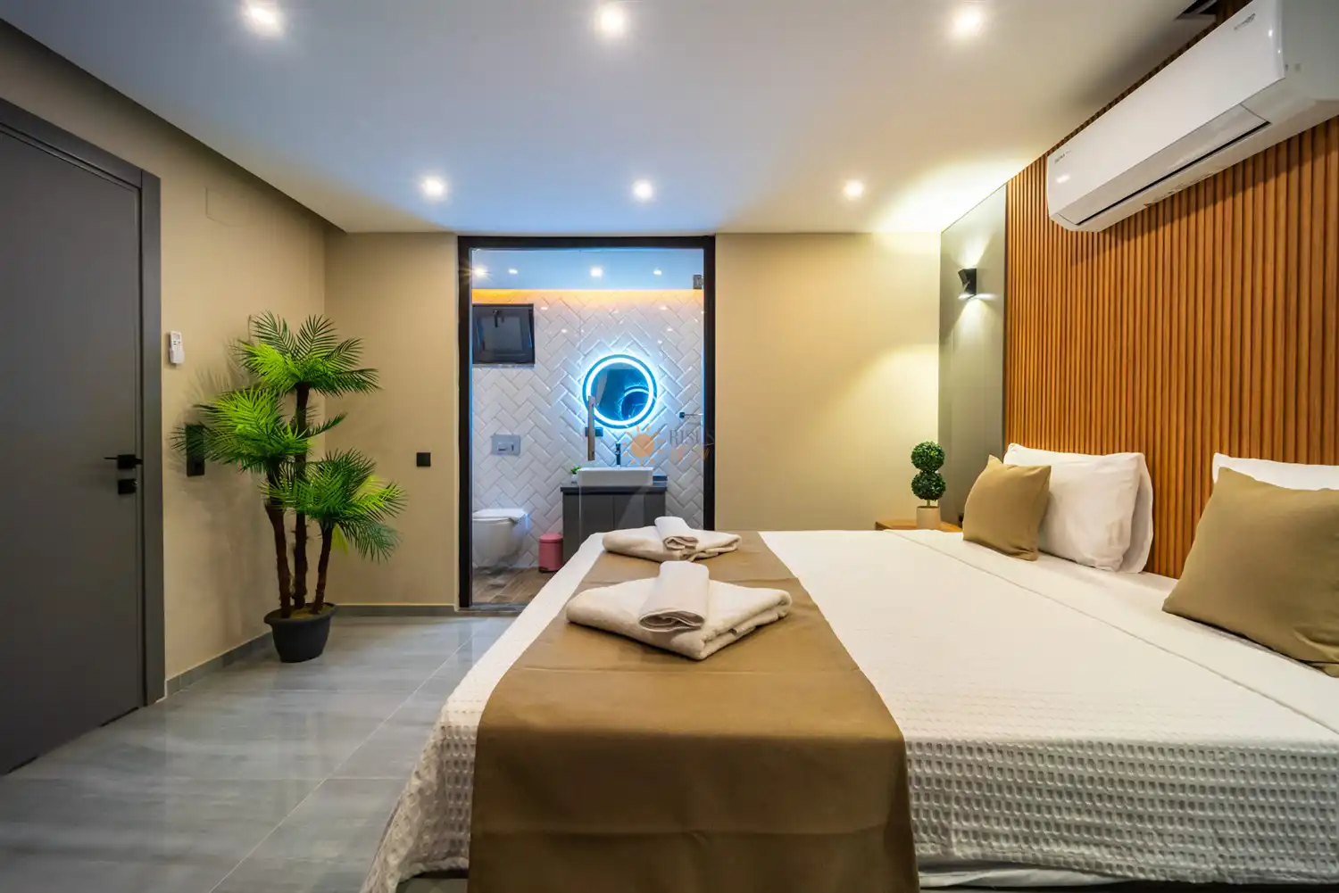 Çift Kişilik Yatak, Banyo/WC, 2 Komodin, Klima