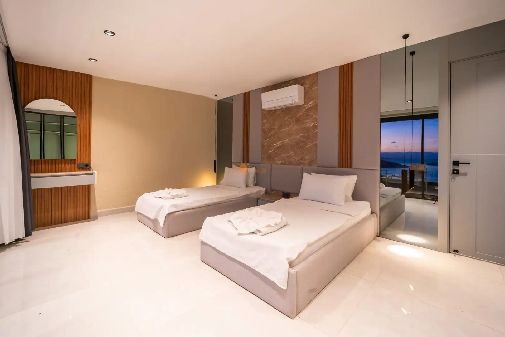 2 Tek Kişilik Yatak, 2 Banyo/WC, 2 Komodin, Elbise dolabı, 2 Makyaj Masası, Klima