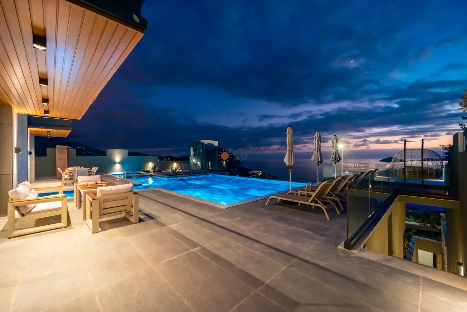 Villa Luxe G, Antalya Kaş Kalkan Bölgesinin Kalamar Mevkiinde Yer Almaktadır. Deniz manzarası ile sizlere harika bir tatil imkanı sunmakta olan Villa Luxe G, 5 yatak odalı, 5 banyolu villamızdır