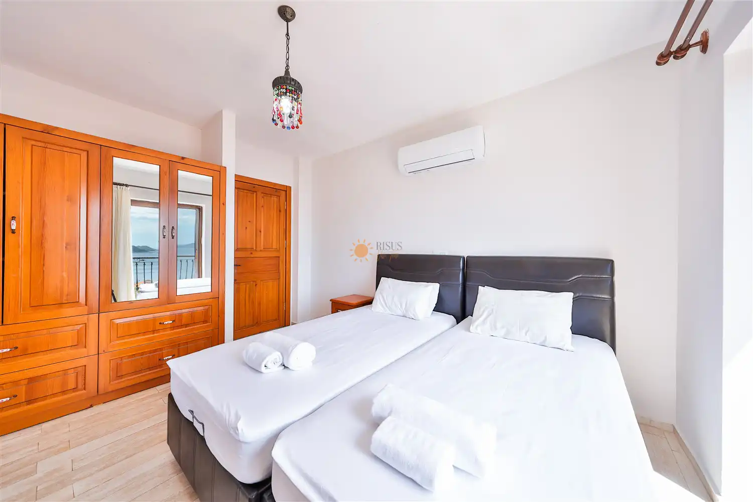 2 Tek Kişilik Yatak, Banyo/WC, TV, 2 Komodin, Elbise dolabı, Klima