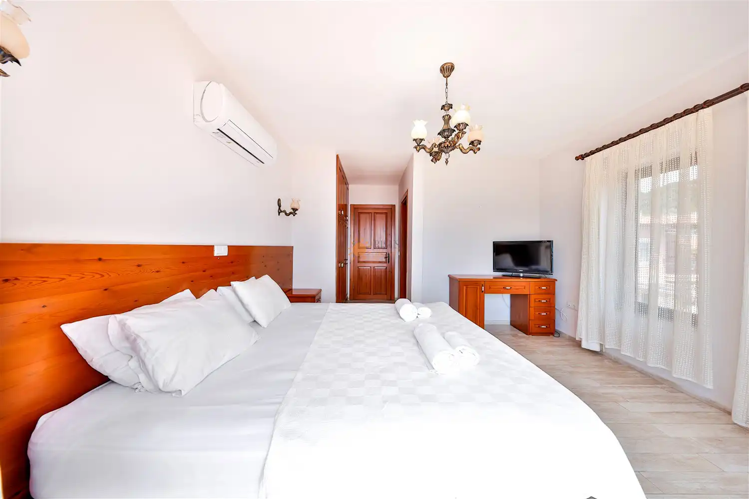 Çift Kişilik Yatak, Banyo/WC, 2 Komodin, Elbise dolabı, Makyaj Masası, Klima