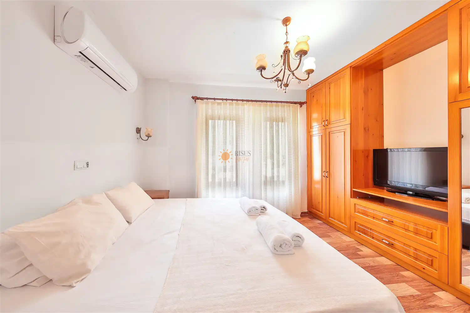 Çift Kişilik Yatak, Banyo/WC, TV, 2 Komodin, Elbise dolabı, Klima