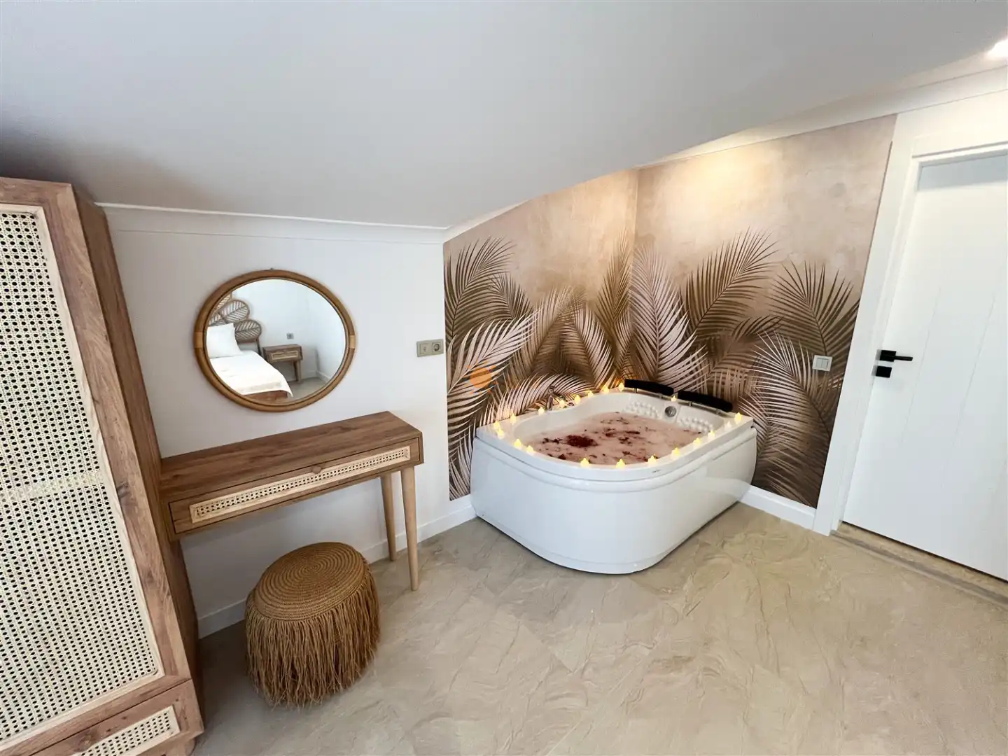 Çift Kişilik Yatak, Jakuzi, Banyo/WC, 2 Komodin, Elbise dolabı, Makyaj Masası, Klima