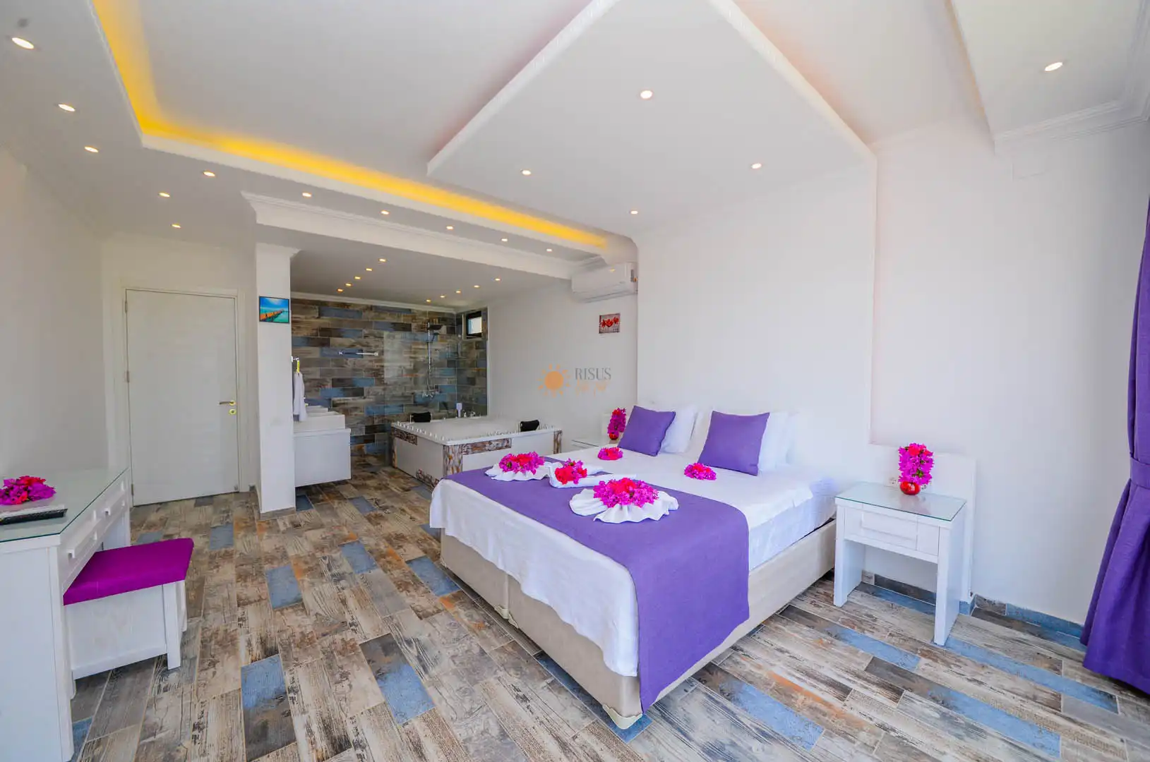 Çift Kişilik Yatak, Jakuzi, Banyo/WC, Komodin, Elbise dolabı, Makyaj Masası, Klima
