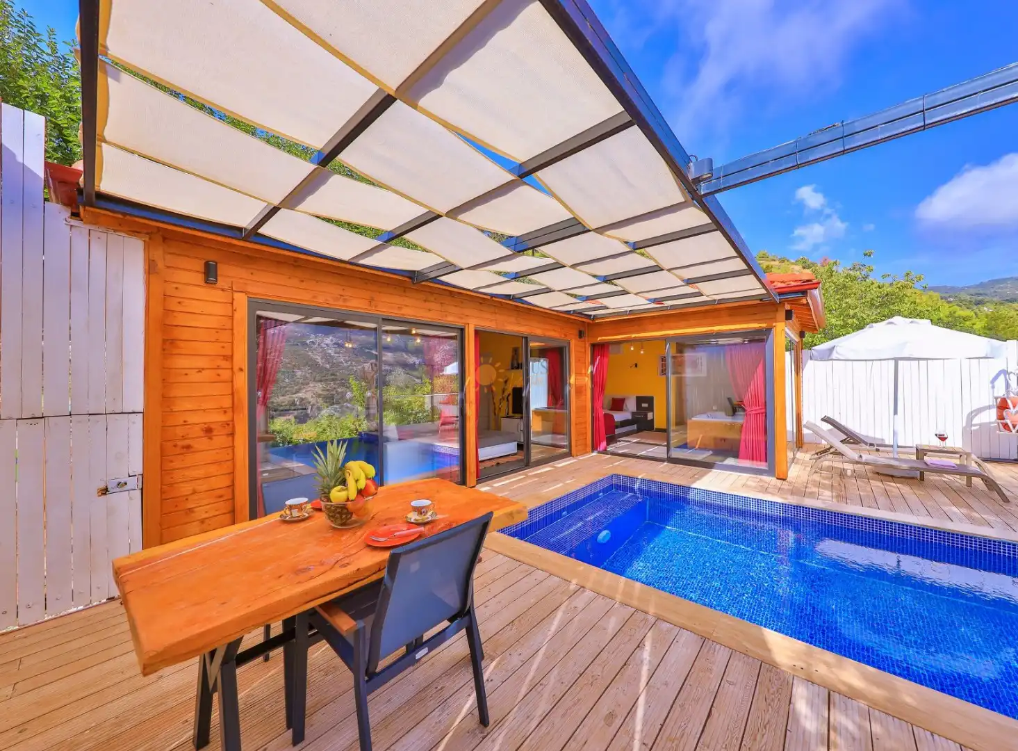5 ) = Rezervasyon iptali giriş tarihine 0-15 gün kala gerçekleştiğinde veya misafir konaklama ( villa,apart,otel vb.) tesisine giriş yapmadığı taktirde misafir toplam rezervasyon bedelinin %100'ünü ödemekle yükümlüdür.
