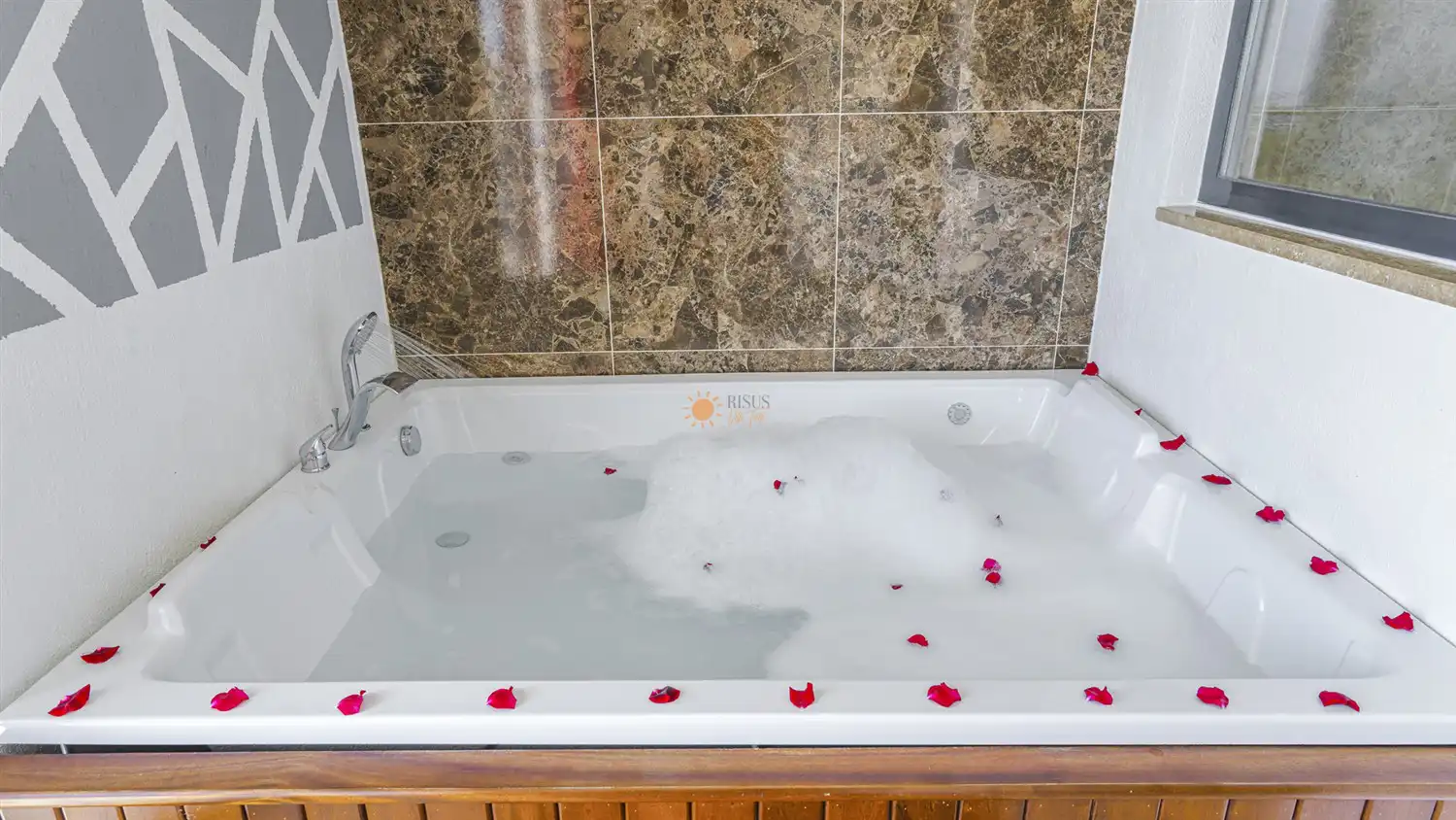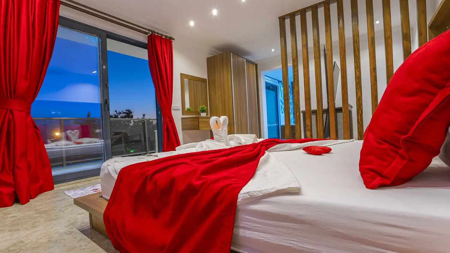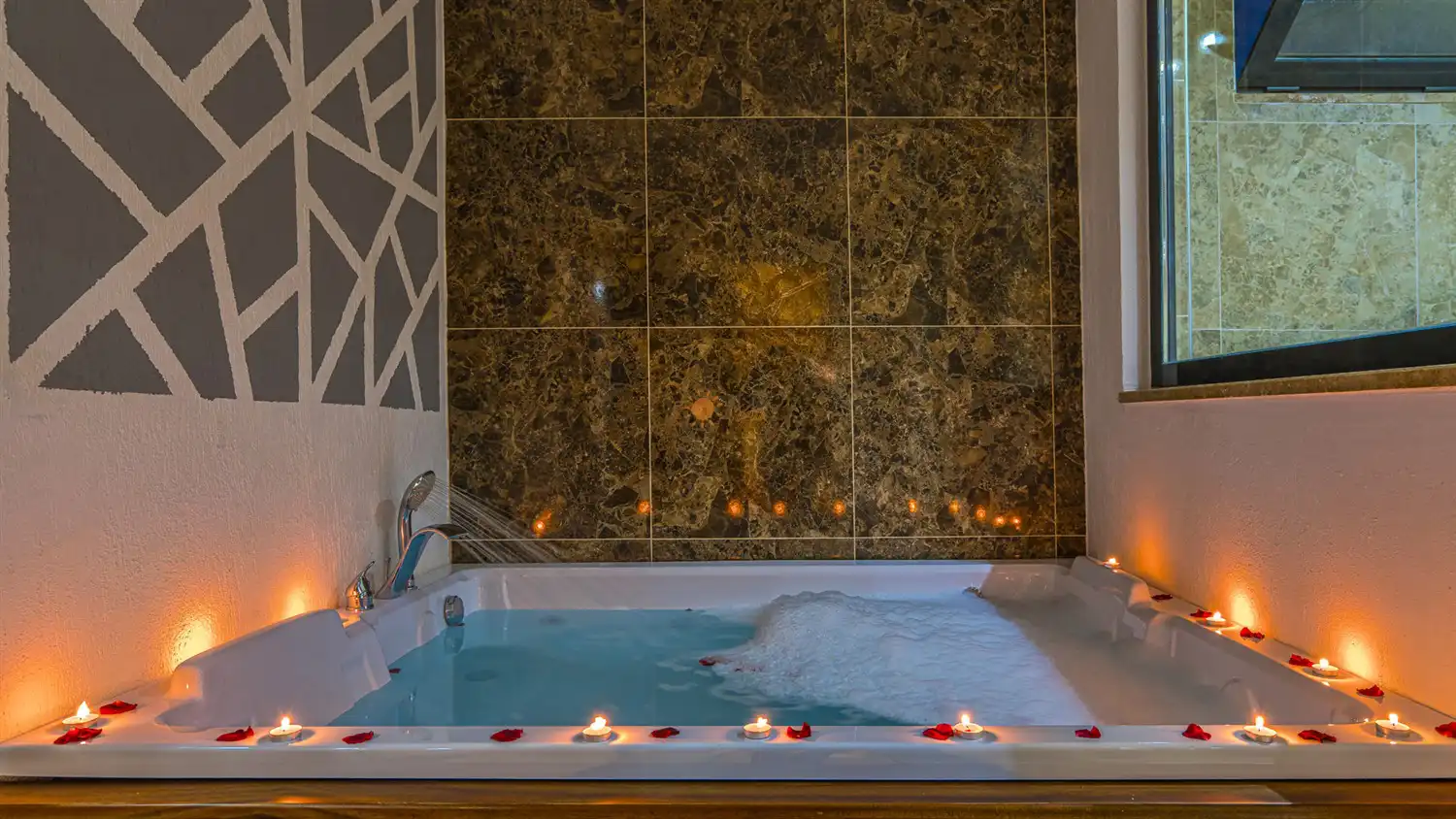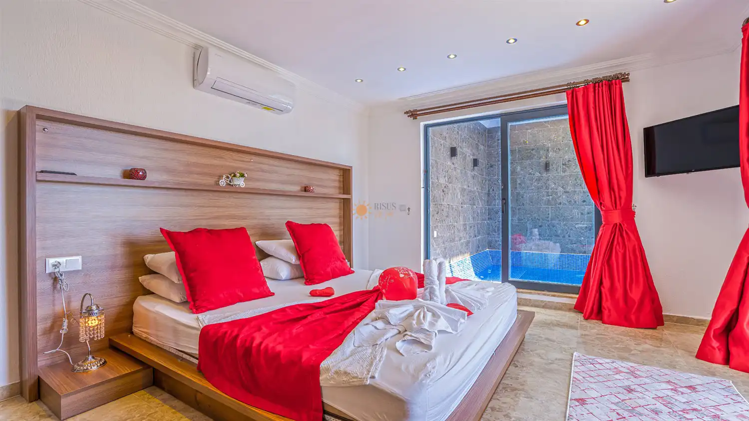 Çift Kişilik Yatak, Jakuzi, Banyo/WC, TV, 2 Komodin, Elbise dolabı, Makyaj Masası, Klima, Kapalı Havuz