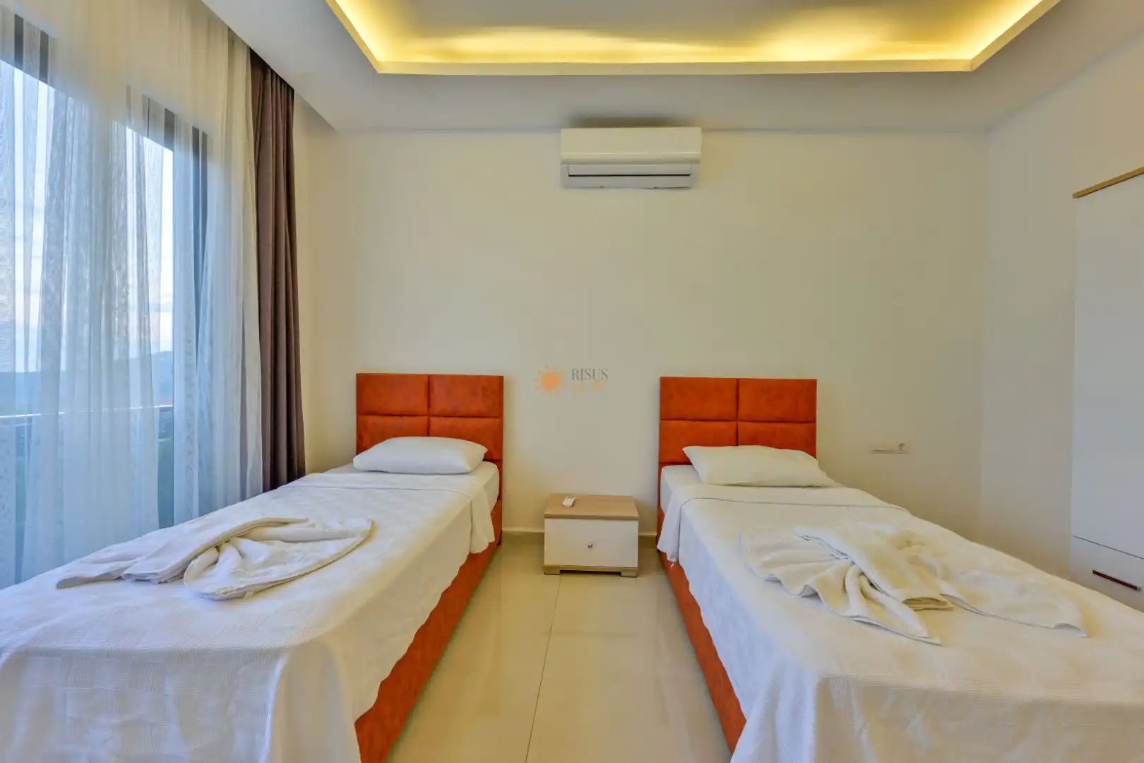 2 Tek Kişilik Yatak, Banyo/WC, Elbise dolabı, Klima