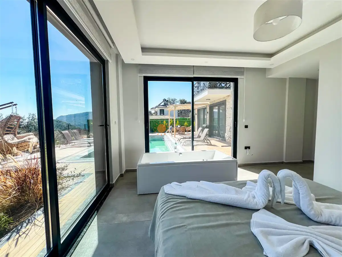 Villa Palos 2, Muğla Fethiye Bölgesinin Kayaköy Mevkiinde Yer Almaktadır. Deniz manzarası ile sizlere harika bir tatil imkanı sunmakta olan Villa Palos 2, 3 yatak odalı, 3 banyolu villamızdır