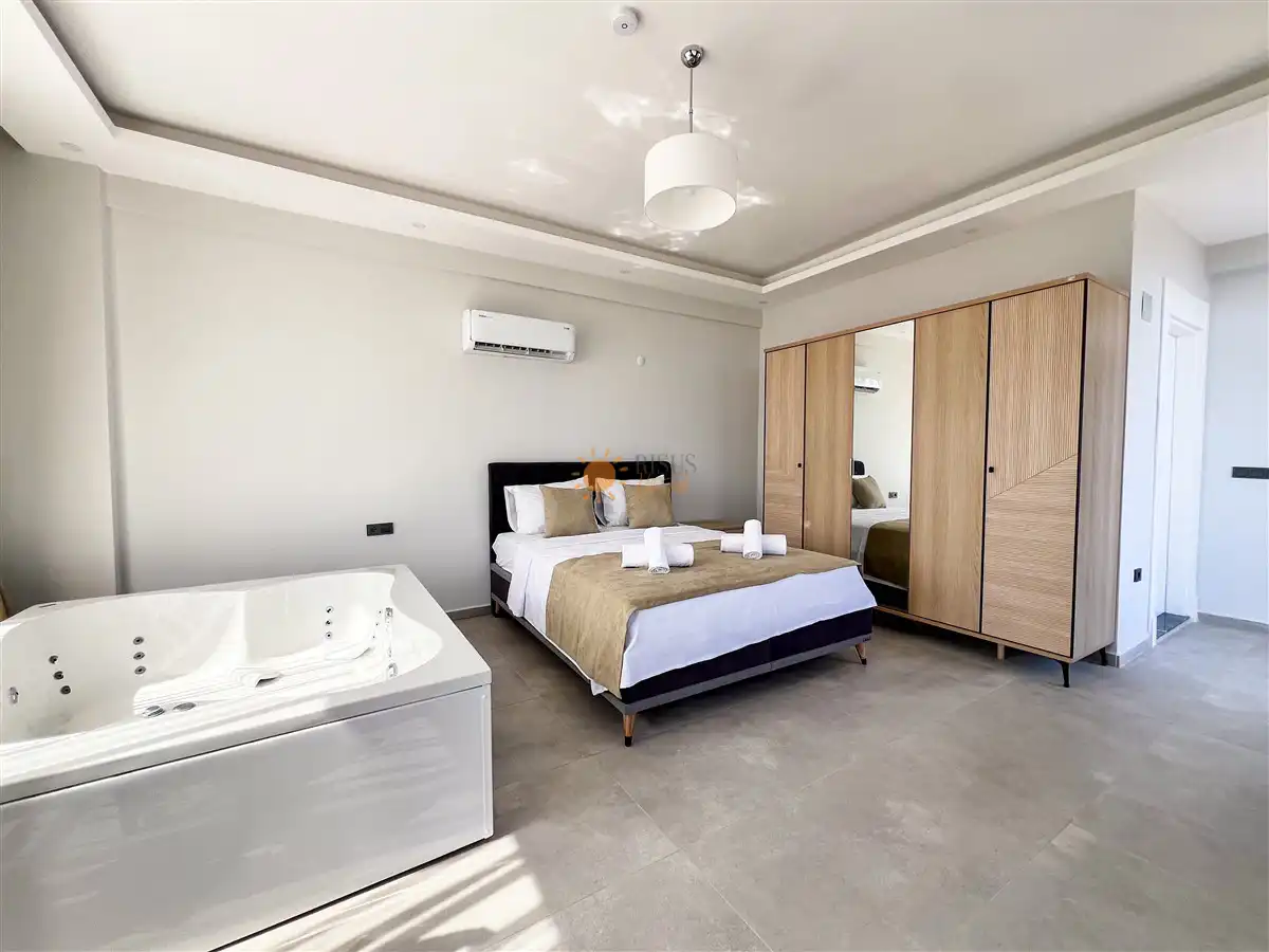 Çift Kişilik Yatak, Jakuzi, Banyo/WC, Komodin, Elbise dolabı, Makyaj Masası, Klima