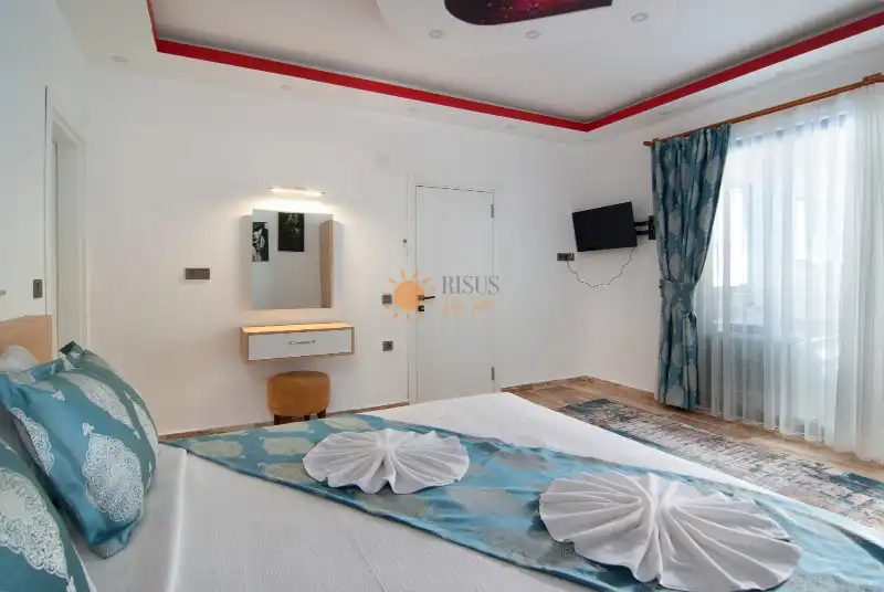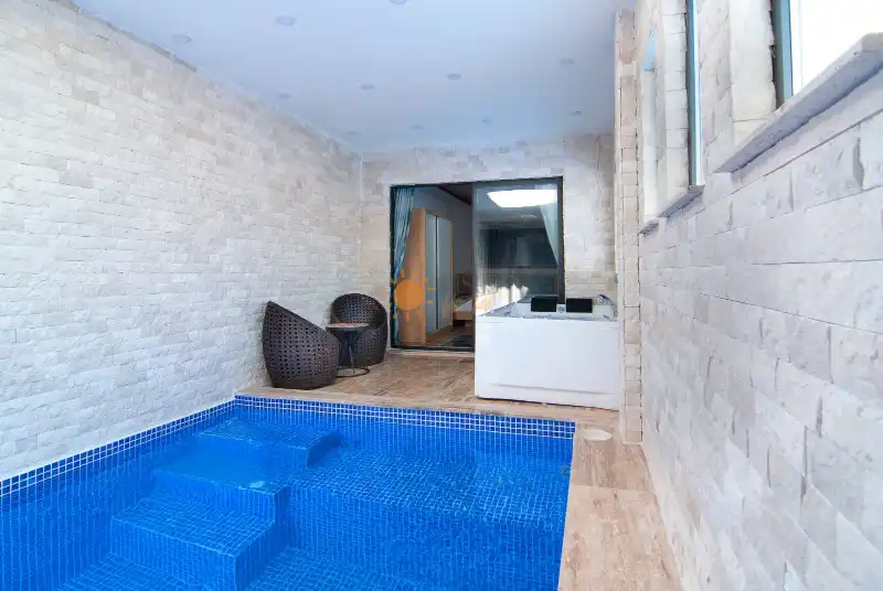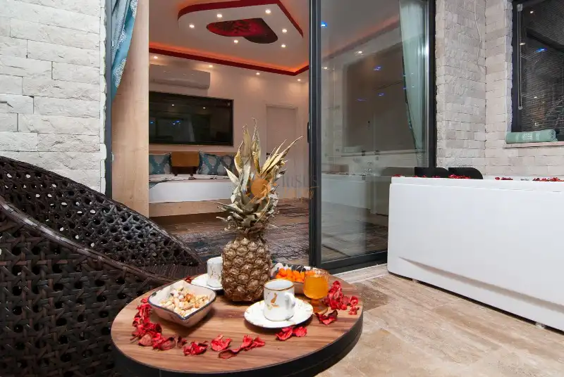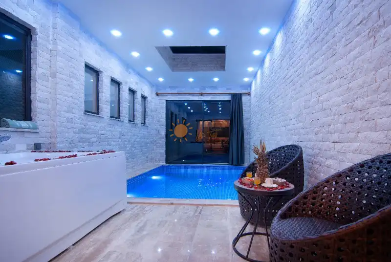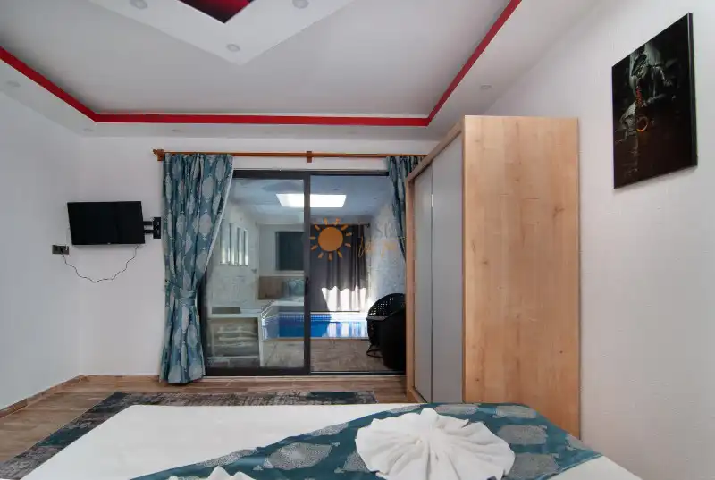 Çift Kişilik Yatak, Jakuzi, Banyo/WC, TV, 2 Komodin, Elbise dolabı, Makyaj Masası, Klima, Kapalı Havuz