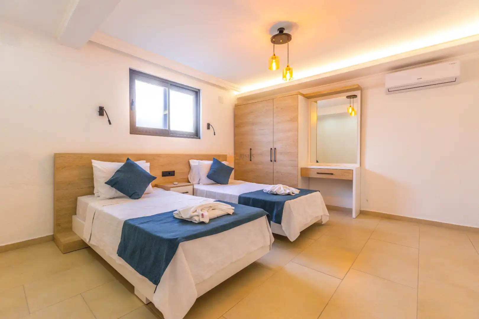 2 Tek Kişilik Yatak, Banyo/WC, Komodin, Elbise dolabı, Makyaj Masası, Klima