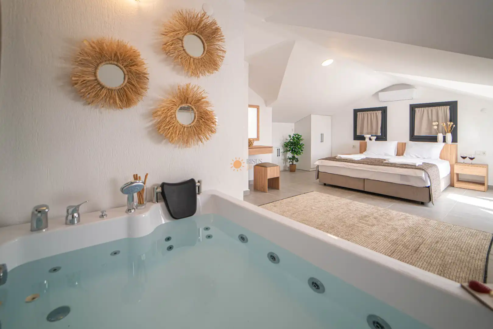 Çift Kişilik Yatak, Jakuzi, Banyo/WC, 2 Komodin, Elbise dolabı, Makyaj Masası, Klima